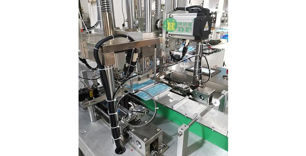 1、本機是一臺全自動化生產(chǎn)平面口罩的機器,從生產(chǎn)口罩本體到接入鼻梁,再到焊接耳帶至成品、包裝都是自動化,不需要人工操作,適用于外耳帶口罩生產(chǎn),也可定制內(nèi)耳帶。